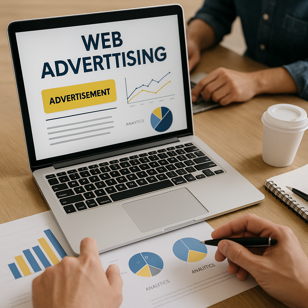 広告を作成してネットに掲載。クリック数や反応を一緒に分析するので、マーケティングの力が自然と身につきます。